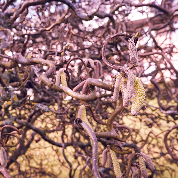 Ses rameaux tortueux sont décoratifs toute l’année, et ses chatons apparaissent en hiver.