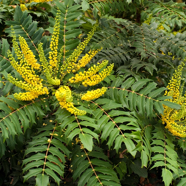 Avec son feuillage persistant et ses grappes de fleurs jaunes en hiver, le mahonia est très décoratif.